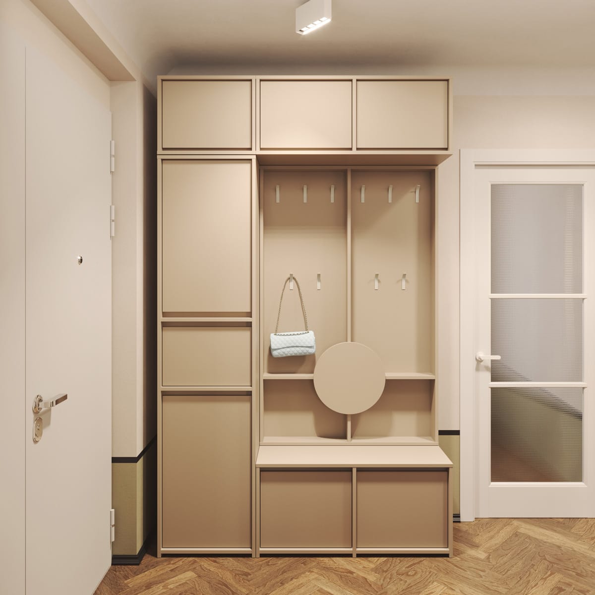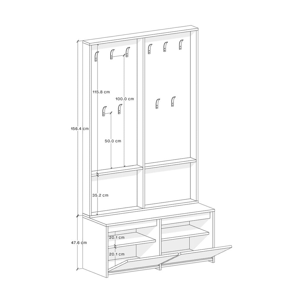Denna moderna, stiliga hallförvaring ger en perfekt lösning för att hålla ditt rum fritt från skokaos.
