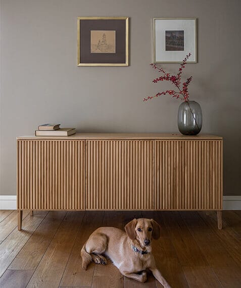 Det här möbeln kommer att lyfta din inredning till nya höjder och är inte bara vacker att se på, utan har också gott om förvaringsutrymme. Phab har en modern design med ribbpaneler på utsidan som ger möblerna djup och värme. Tillverkad av FSC-certifierat trävirke ![]()