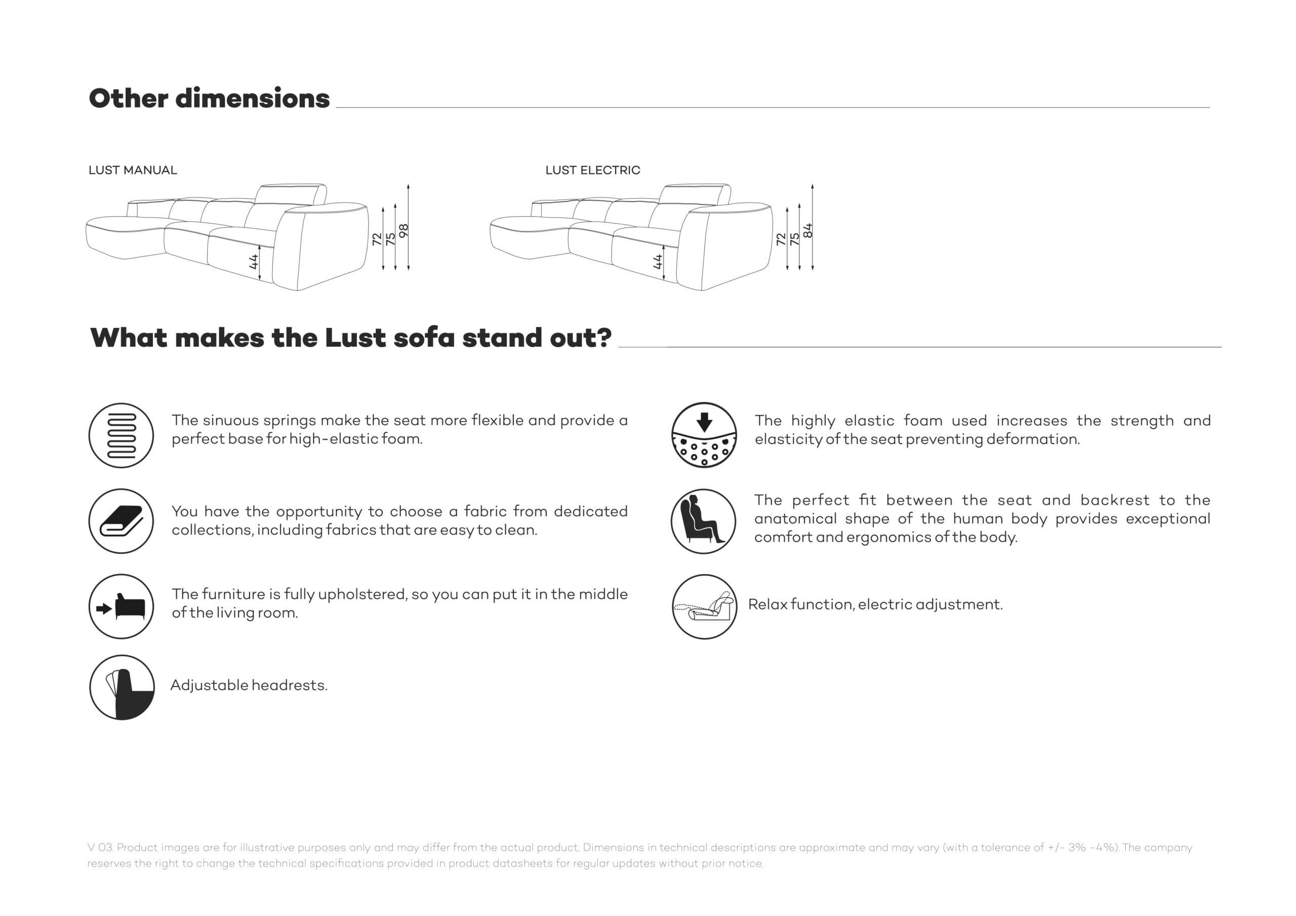 Komforten forsterkes av selve formen på sofaen – bred og dyp samt fyllet som består av en spesiell sammensetning av høyelastisk skum, late skum og dyner fylt med silikondun.