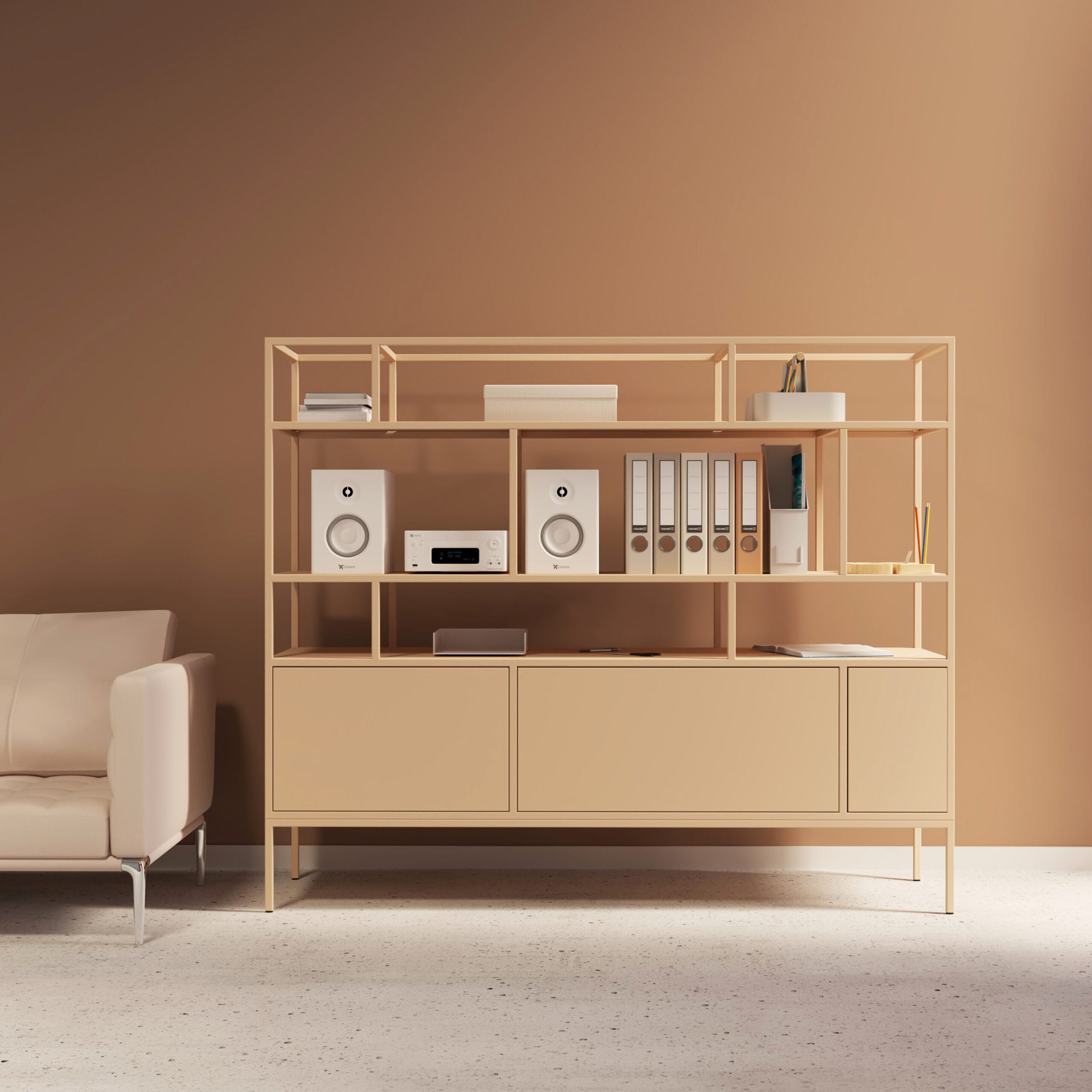 Lanta er et frittstående hyllesystem i pulverlakkerte metall som skaper et luftig design.