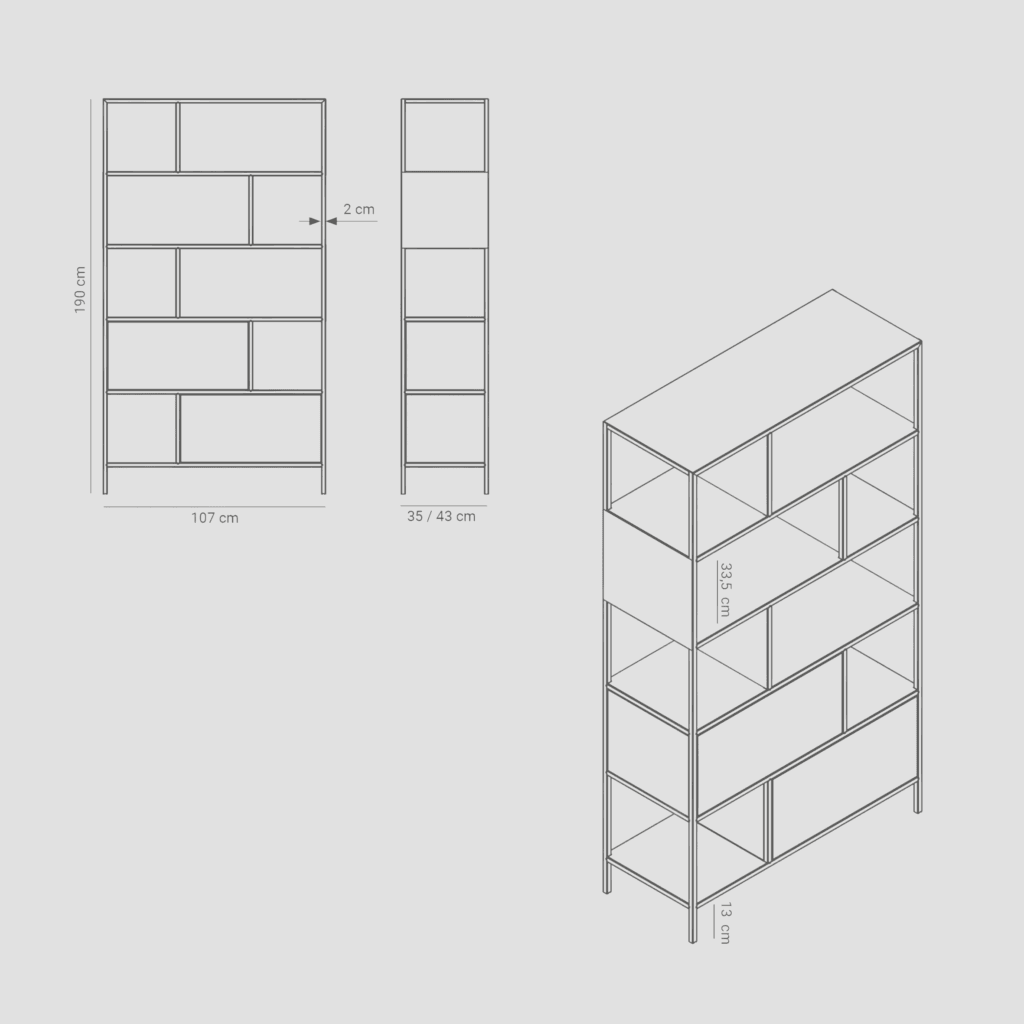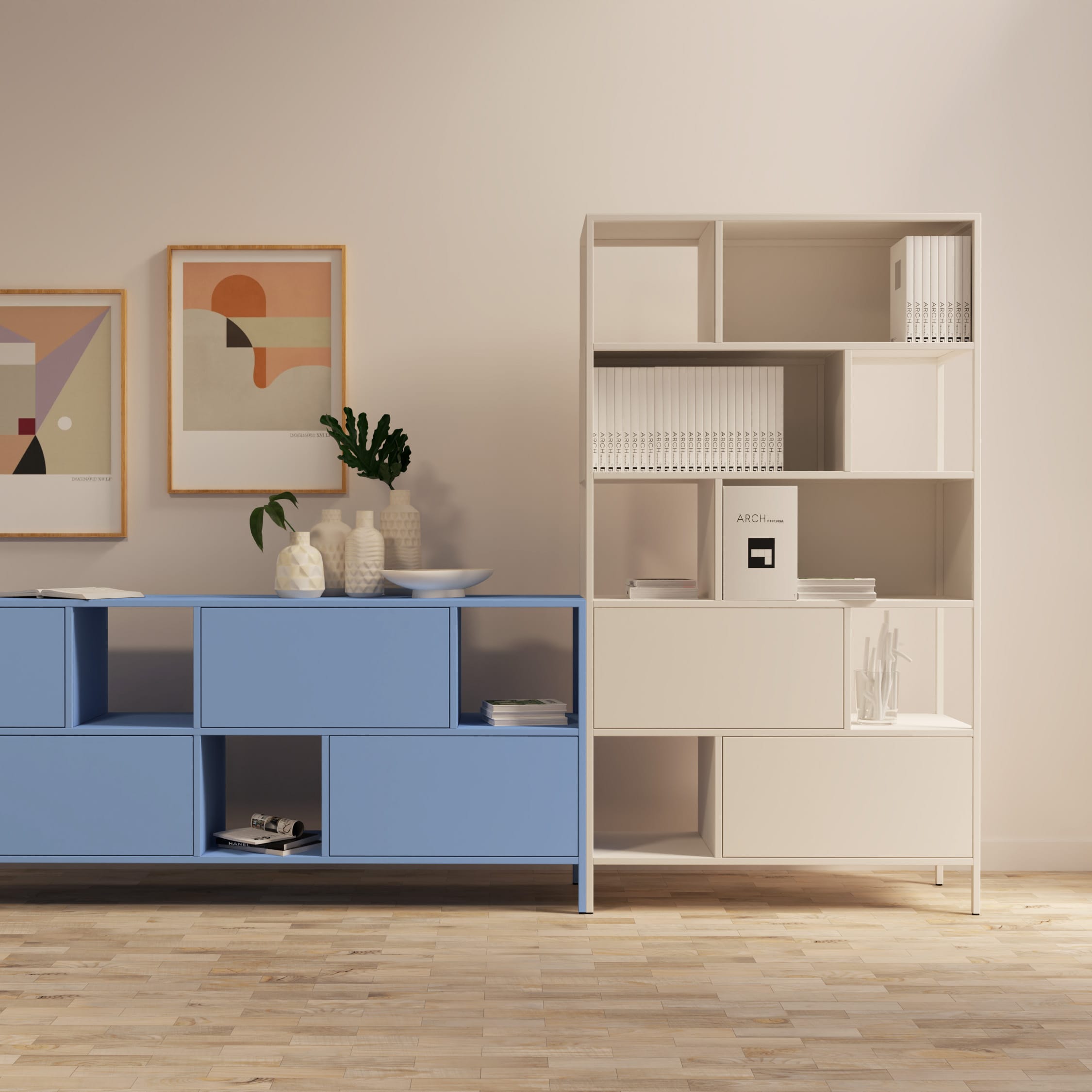 Lilum er et frittstående hylle i pulverlakkerte metall som skaper et luftig design.