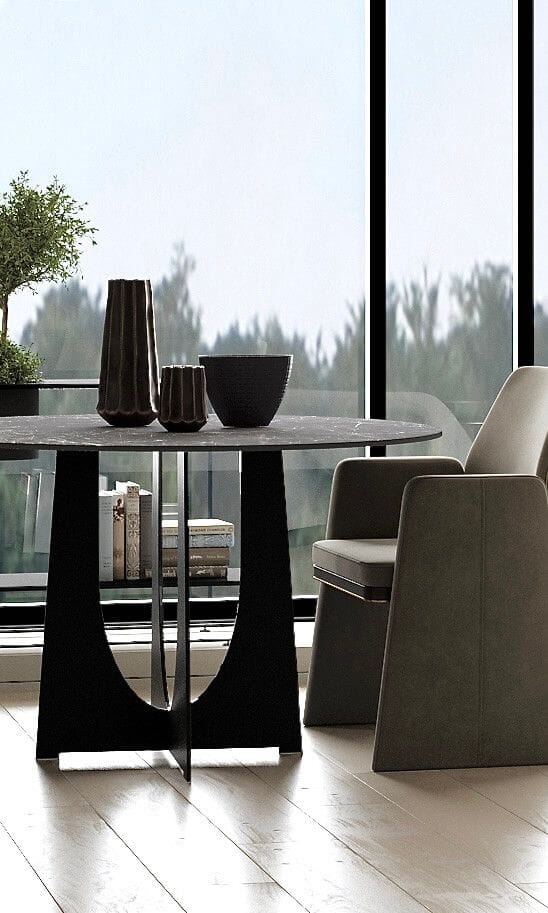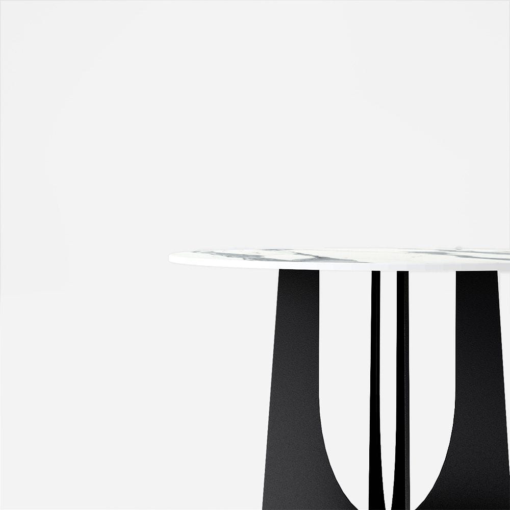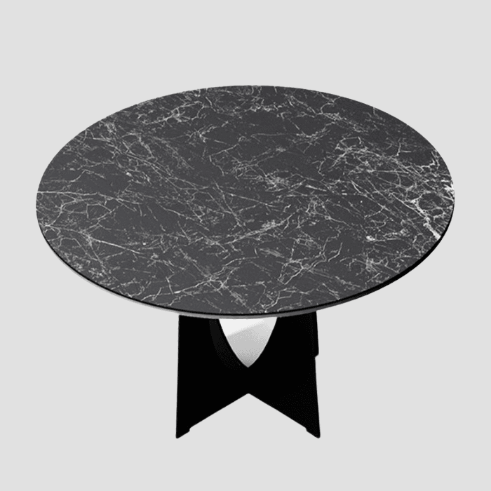 Takket være bruken av en utrolig holdbar keramisk sammensetning, er bordplaten på dette runde bordet nesten uødeleggelig. Dette bordet er motstandsdyktig mot skader, flekker og høy temperatur, og er en møbel som oppfyller alle sine formål samtidig som det er et vakkert dekorativt tilbehør.