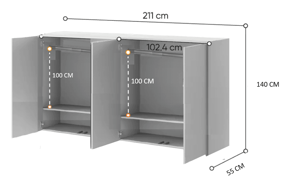 H:140 x B:211 x D:55 cm