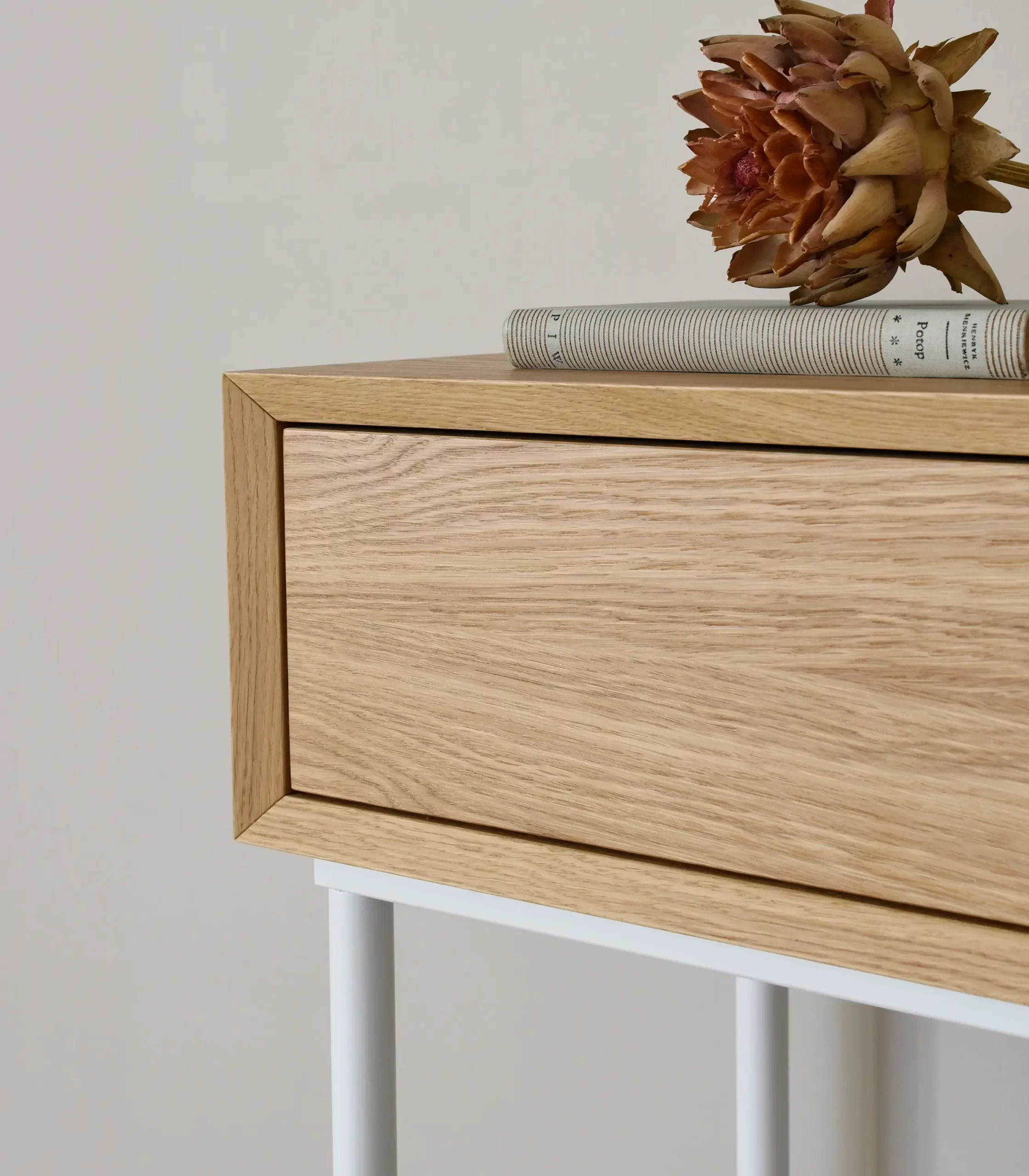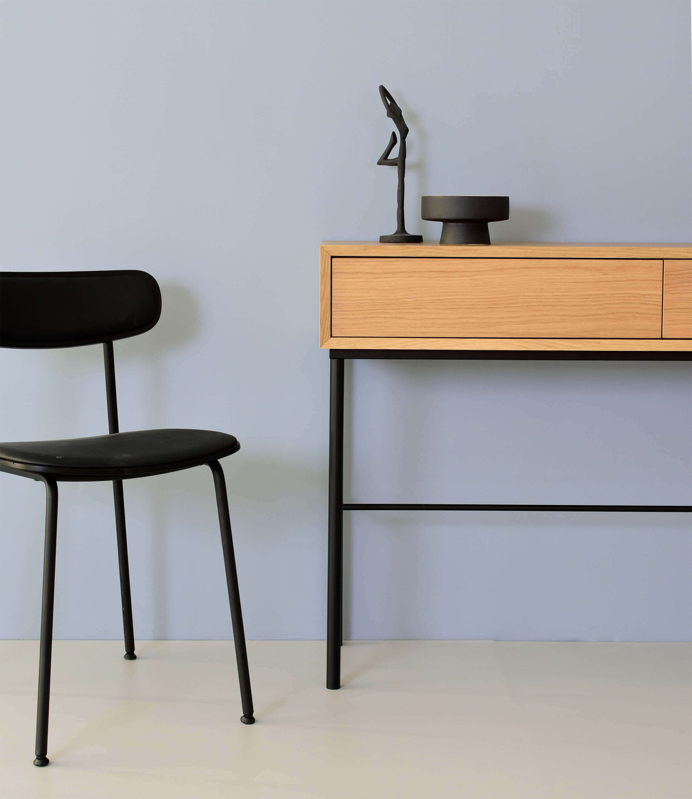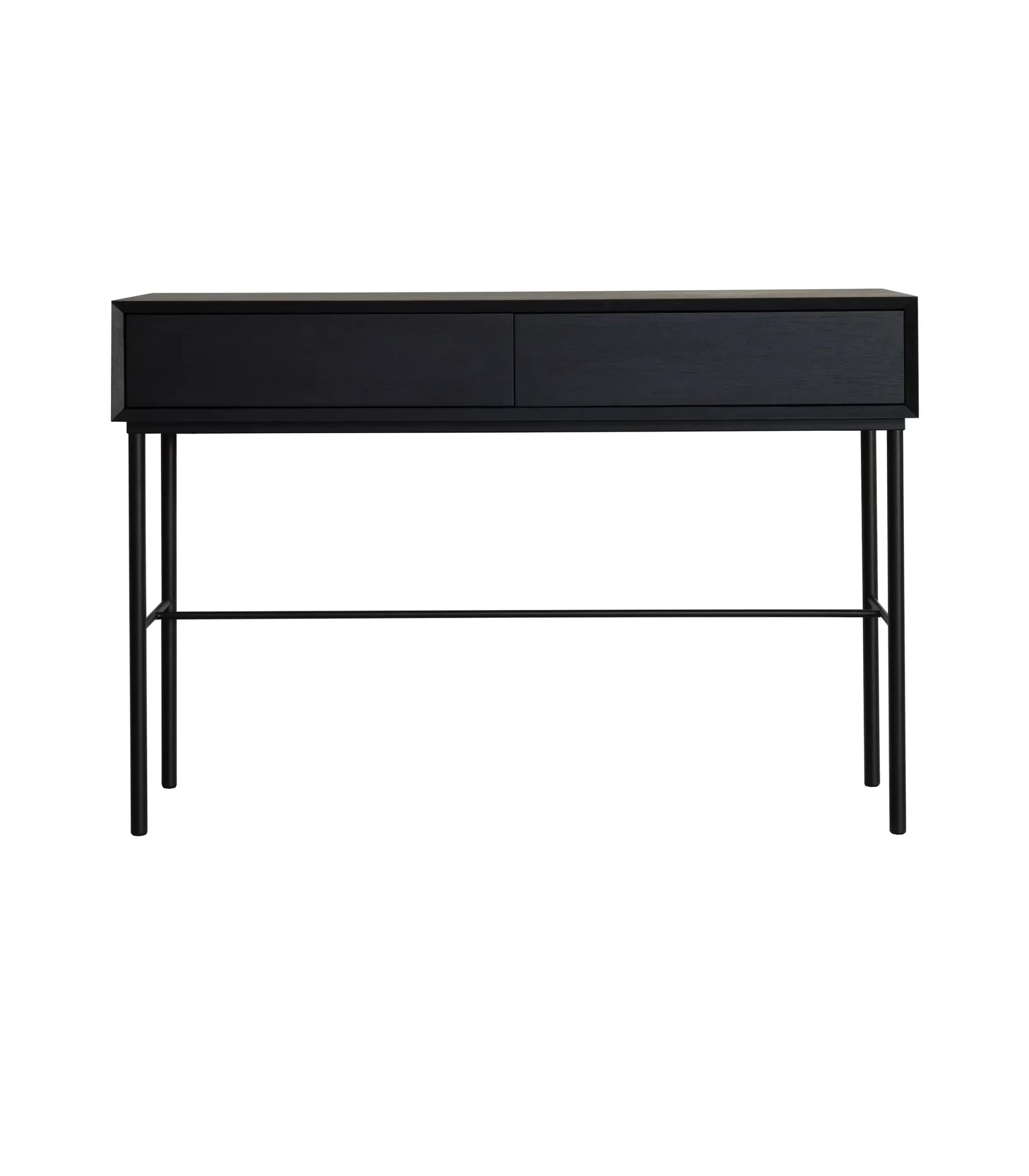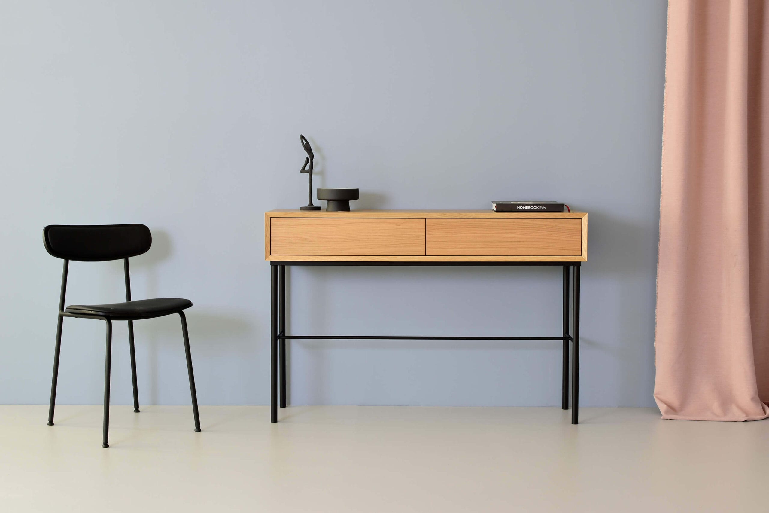 AURORA er en lekker konsoll i nordisk stil som passer inn i alle moderne hjem. Konsollbord er fremstilt i eik finer og har pulverlakkerte stålben.