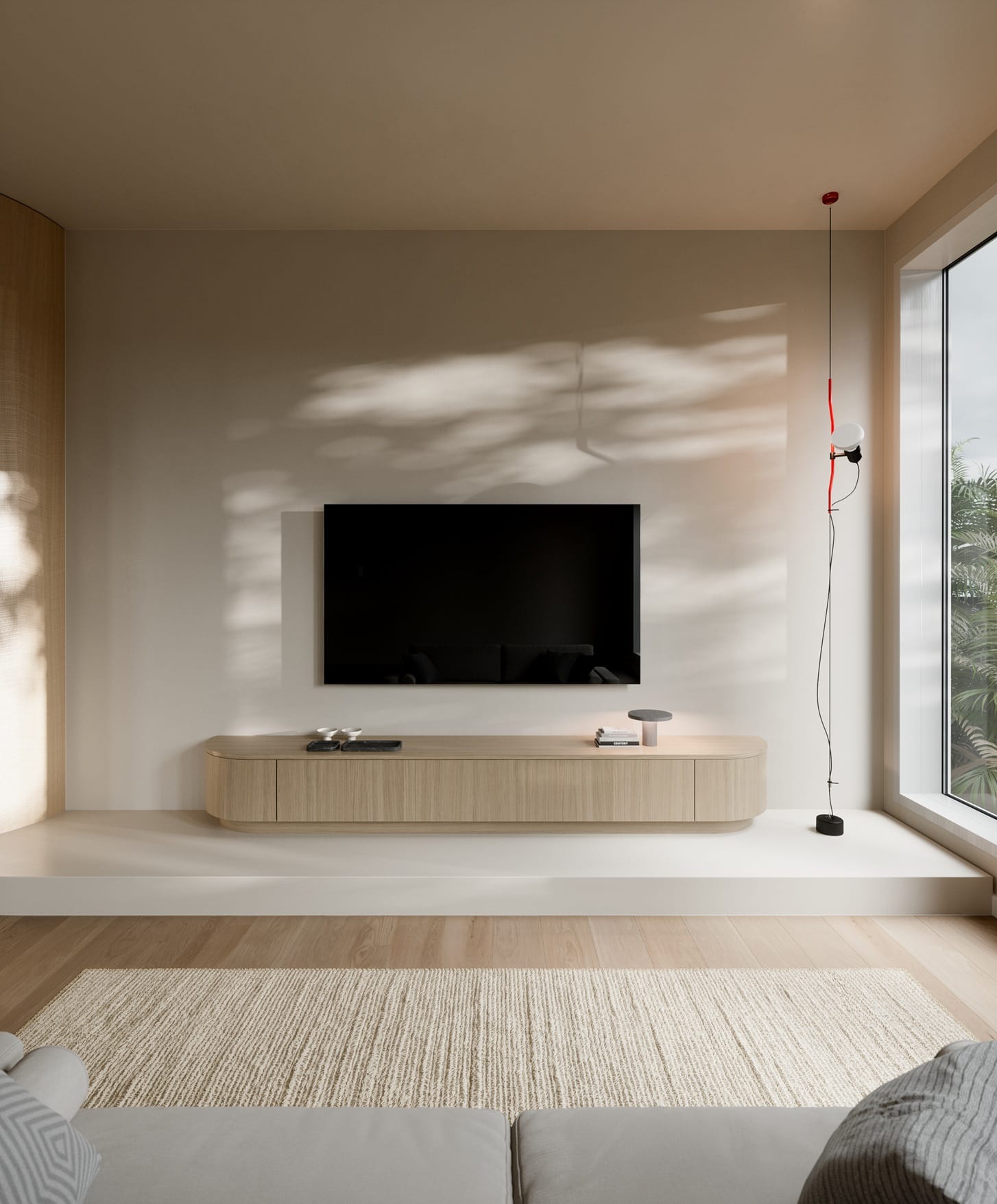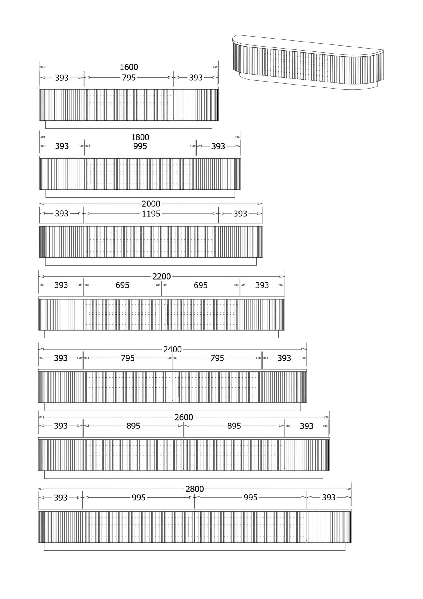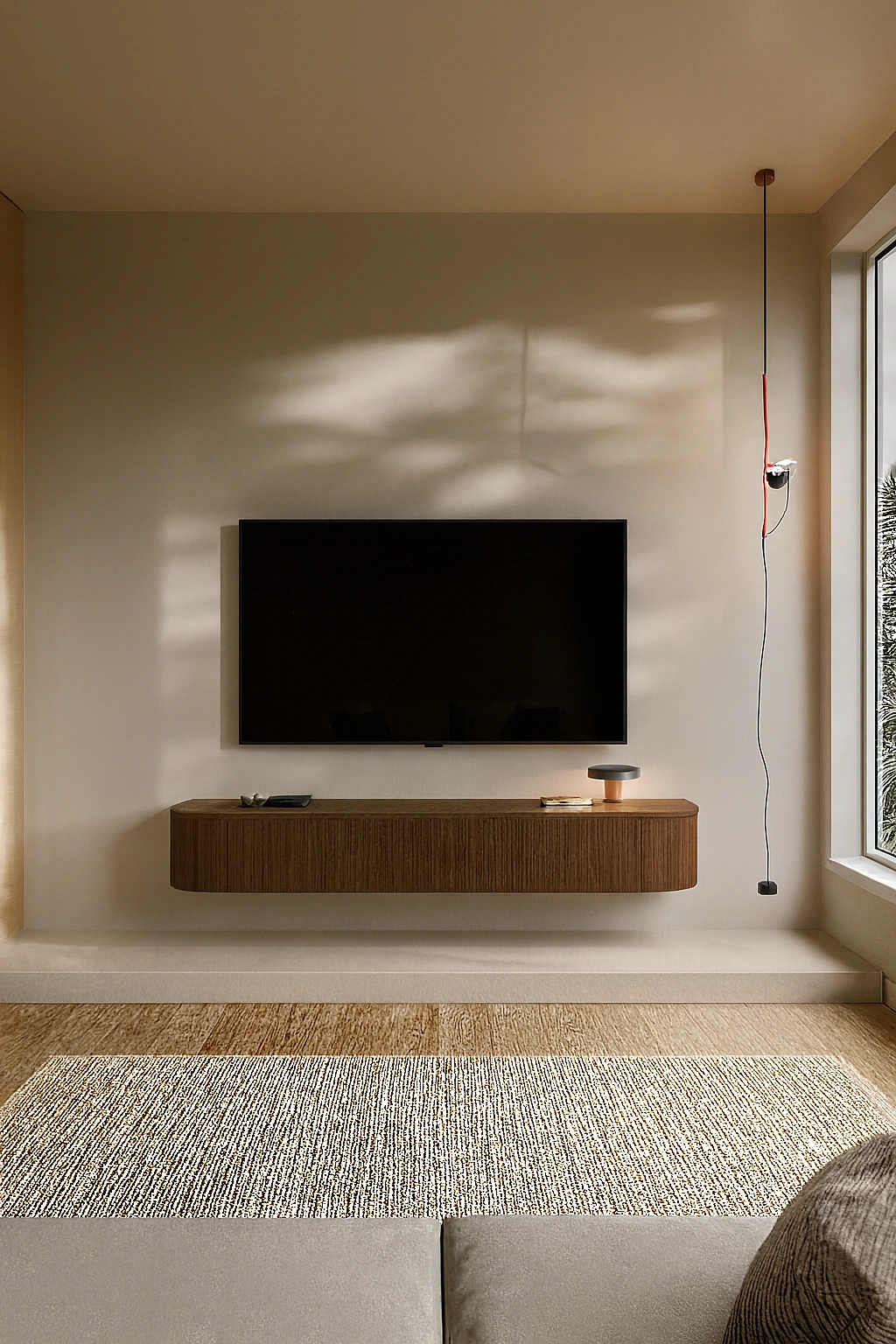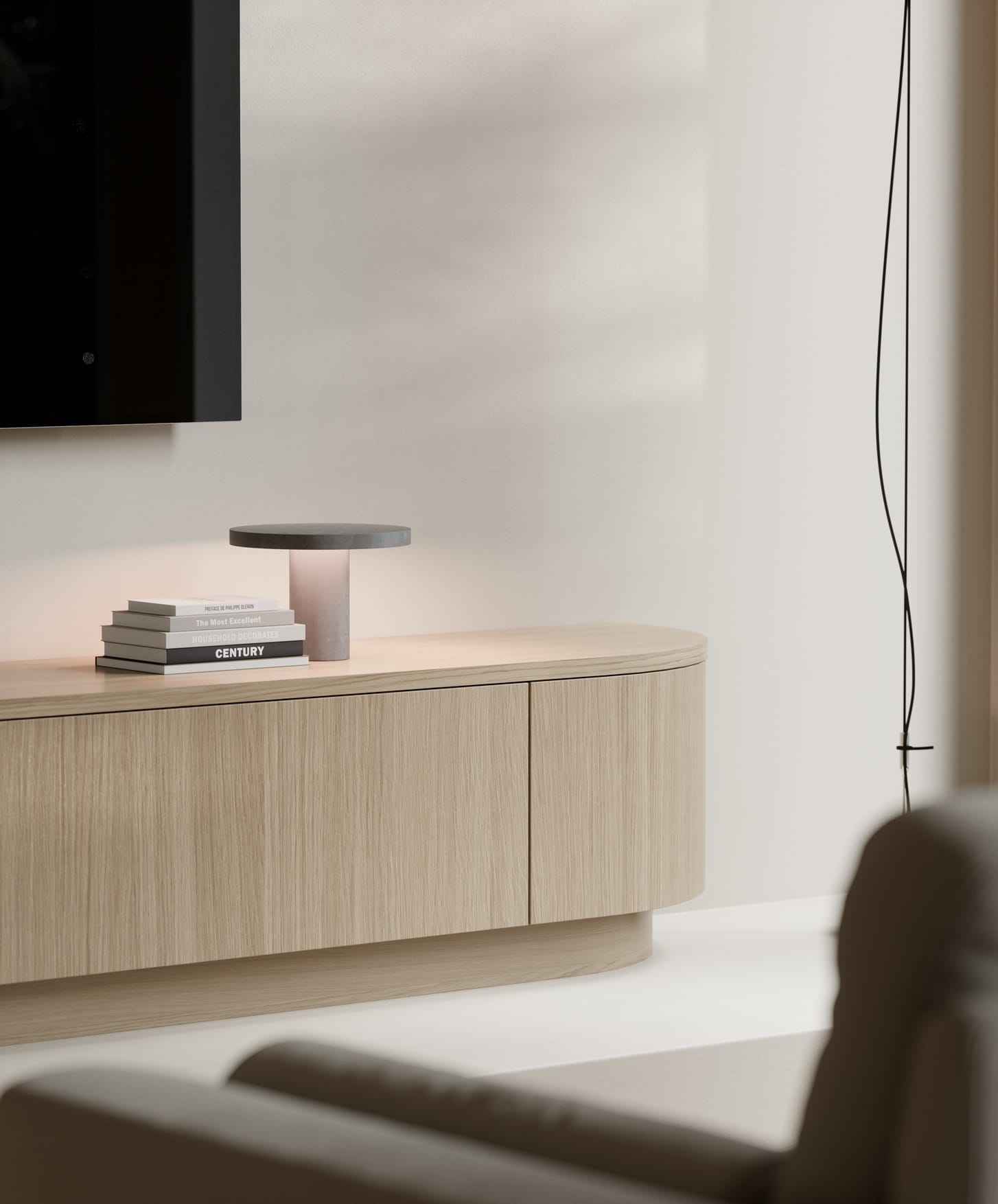 Skiljeväggar har utskärningar för kabeldragning inuti bänken vilket möjliggör fri passage av kablar mellan TV:n och de 2 rummen.