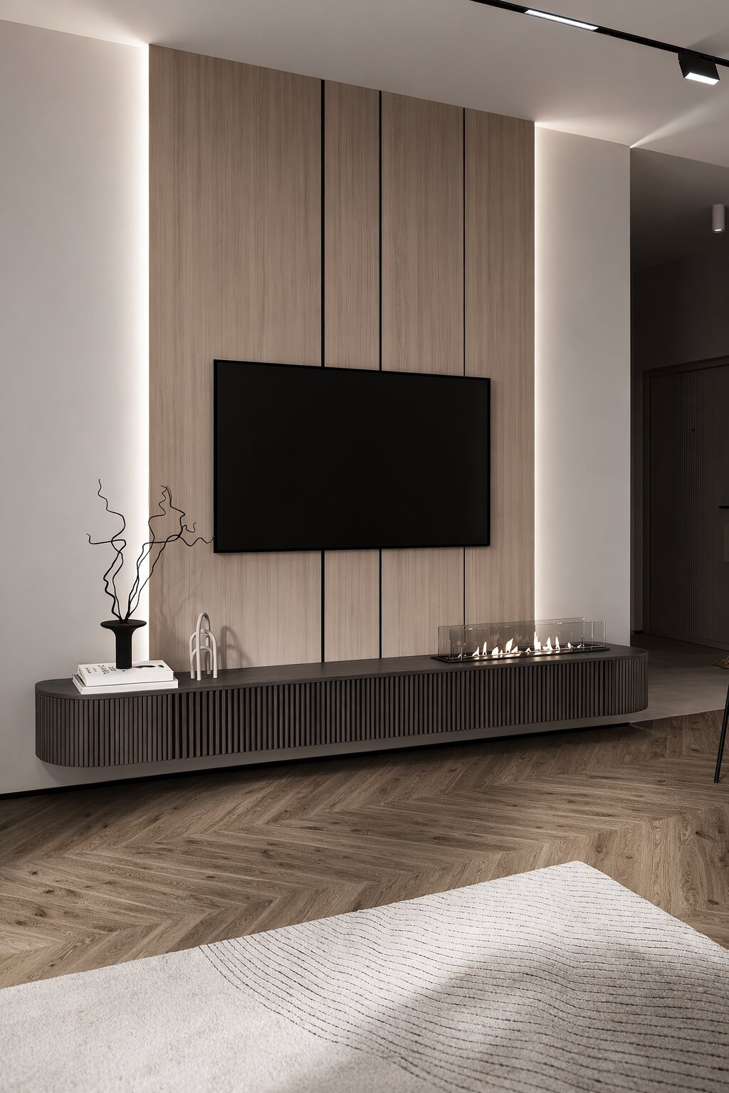 Skiljeväggar har utskärningar för kabeldragning inuti bänken vilket möjliggör fri passage av kablar mellan TV:n och de 2 rummen.