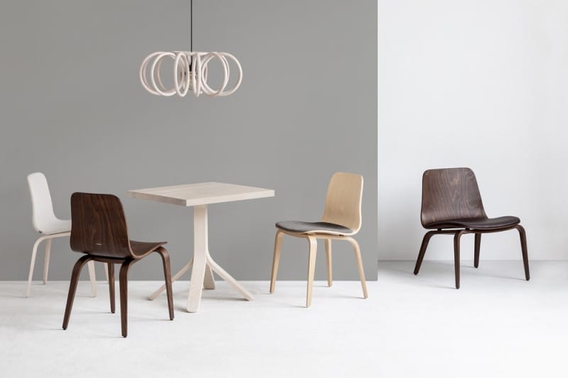 Hips kolleksjon er laget helt av flerlags finer med varierende tykkelse, er en kombinasjon av moderne elegant design og avansert bøyingsteknologi for tre. Endringen i tykkelse som brukes i sete og ben, gir letthet til formen – og understreker de tynne kantene av fineren – og gir samtidig en solid konstruksjon. Hips er tilgjengelig i flere versjoner: uten polstring, med polstret sete eller fullt polstret.