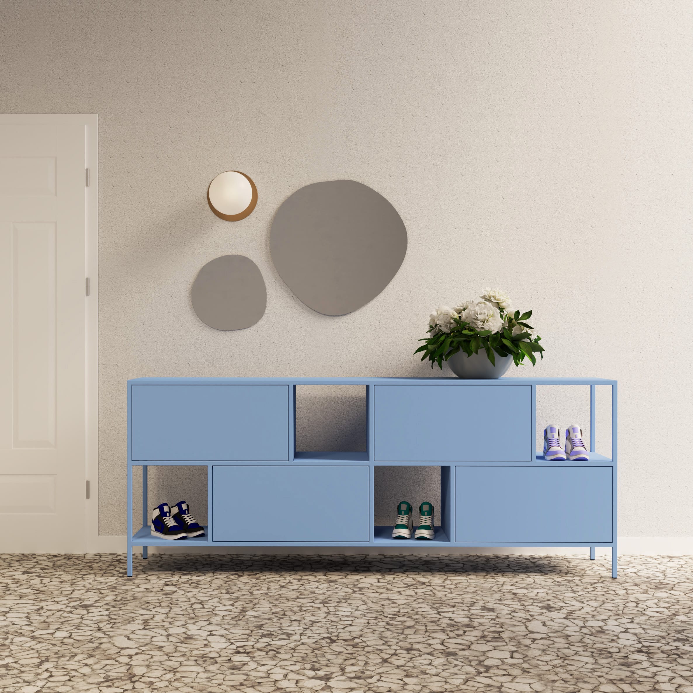 Lilum skjenk er laget av pulverlakkert stål av utmerket kvalitet