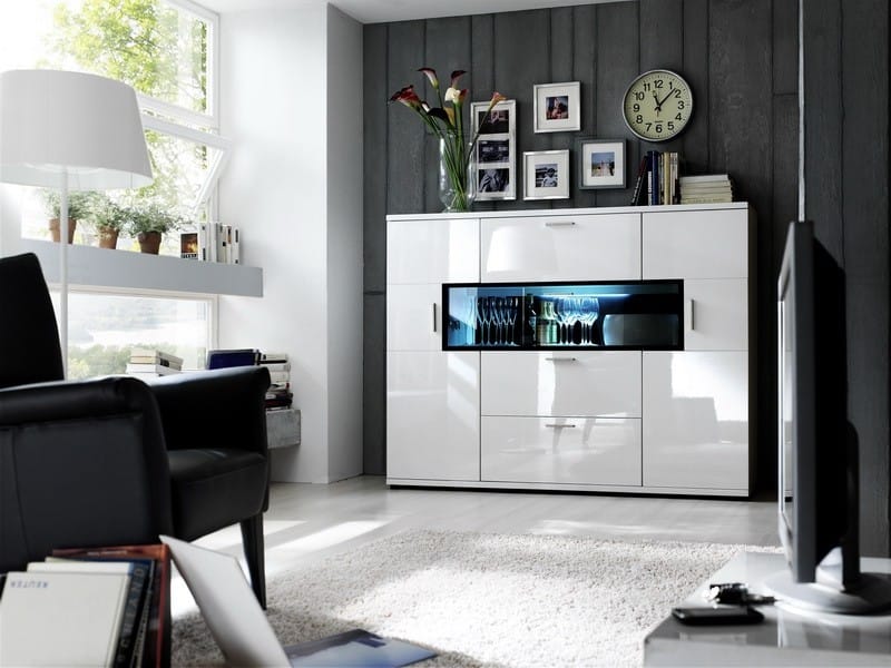 Skänken Omega har en smal och modern design med rena, raka linjer.