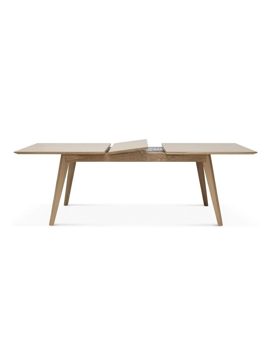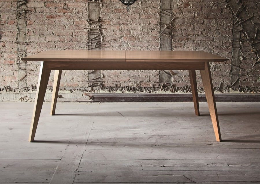 Modernt uttrekkbart bord fra Arcos-samlingen er en kombinasjon av kubistiske former og sterke former. Bruken av tilsynelatende enkel konstruksjon fremhever perfekt skjønnheten og strukturen til naturlig tre