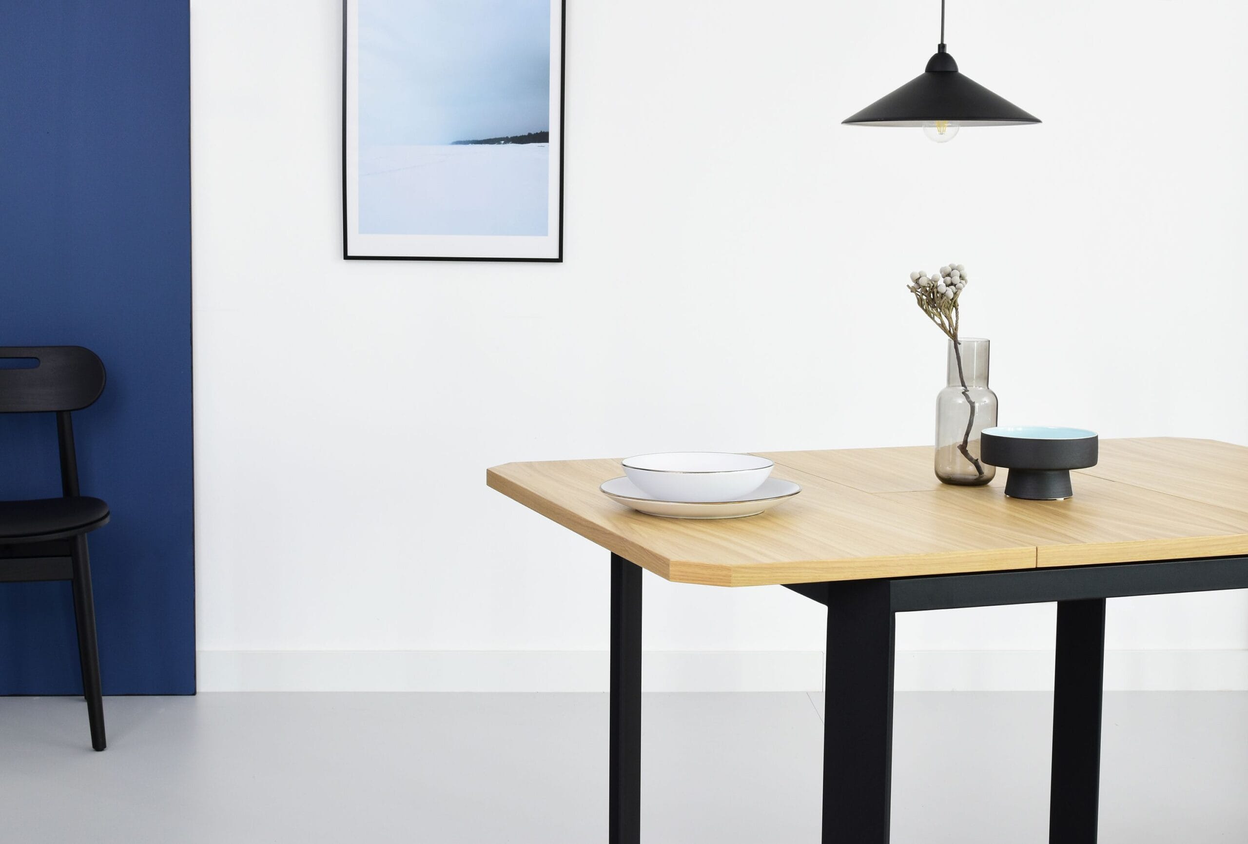 Spisebord i nordisk design med stilrene linjer.