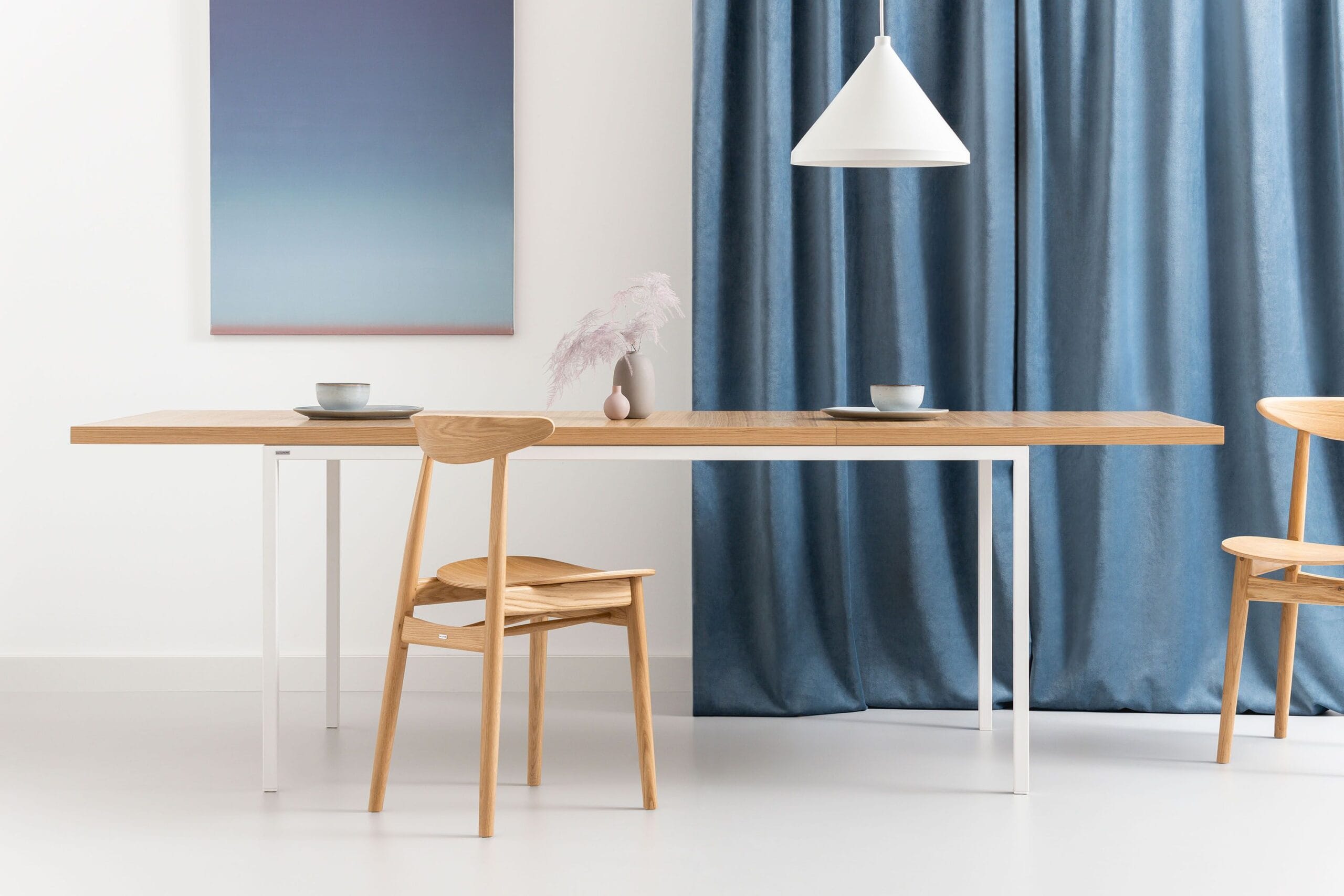 Men det ser ikke bare flott ut, det er også en liten luring. Skulle du få gjester? Da utvider du det enkelt med ekstra bordplate.