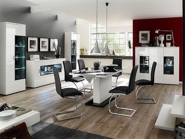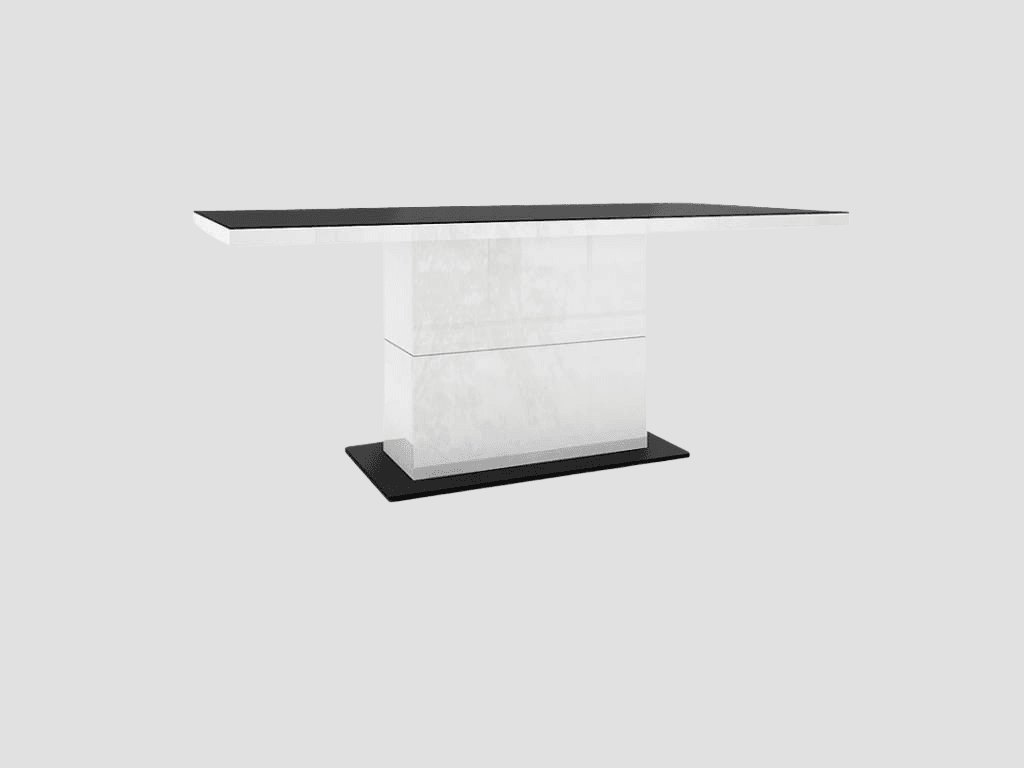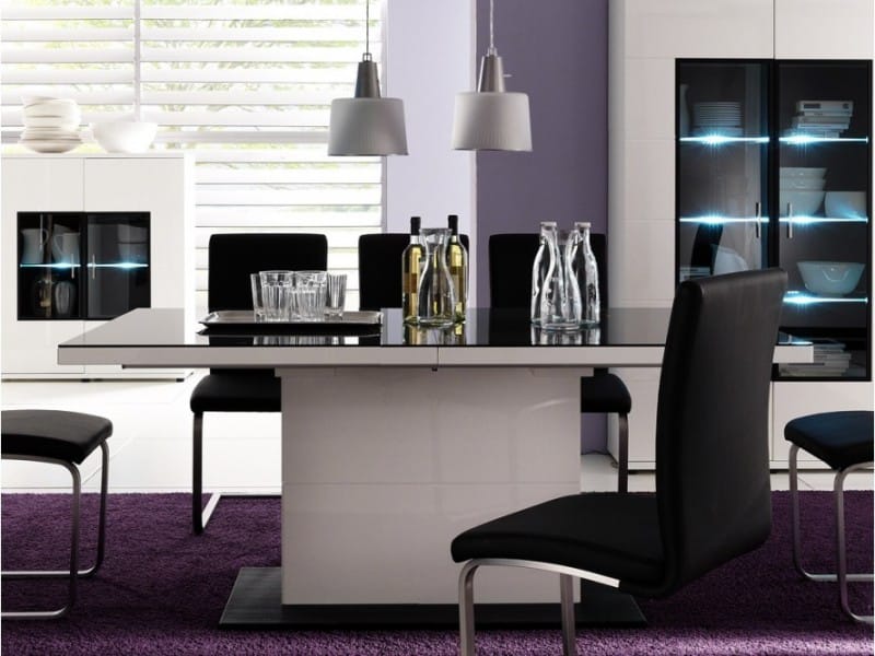 Ett snyggt matbord med modern design. Bordet är praktiskt eftersom du enkelt kan förlänga det.