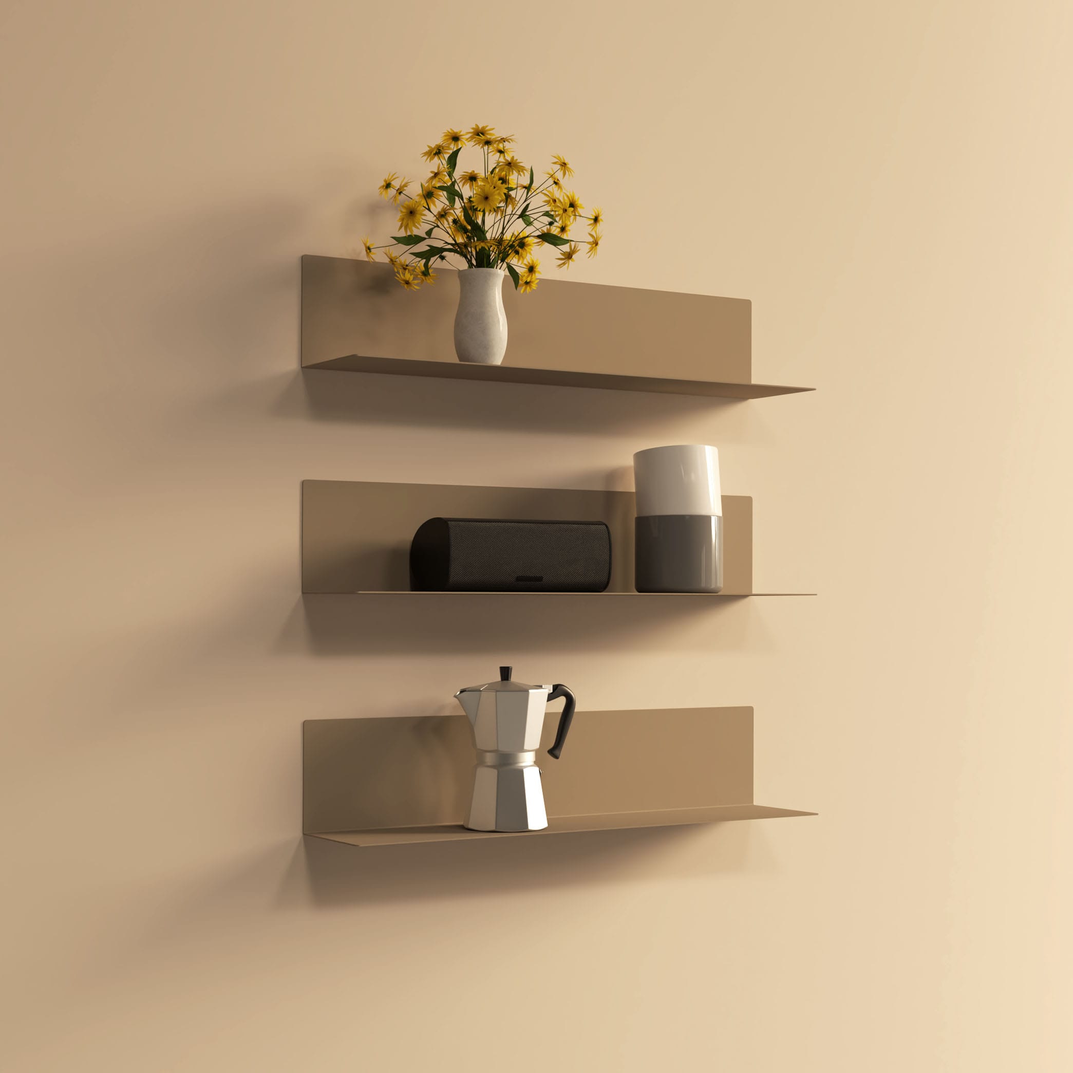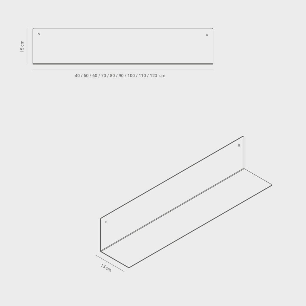 Solid og stilren vegghylle i pulverlakkert metall . Perfekt for oppbevaring på mindre arealer.