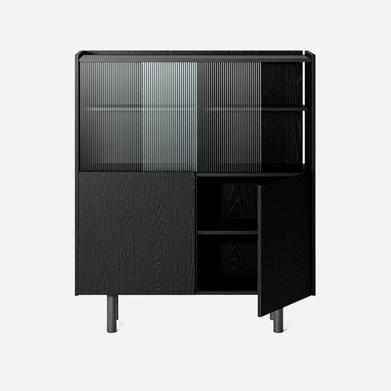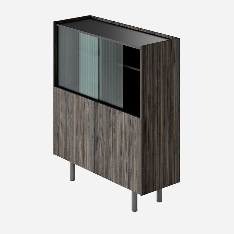 Vitro skap med skyvedører i ornament glass, designet av Midsty. Denne usædvanlige skap bliver helt sikkert markant i dit hjem. Den ru overflaten har en eksepsjonell visuell innvirkning på tvers av ensfargede dekorer og tredekorer. Denne teksturen gir en ekte følelse av natur. Vi ser på detaljene – topplaten og hyllene er laget av bestandig struktur SVART Ultra Matt.